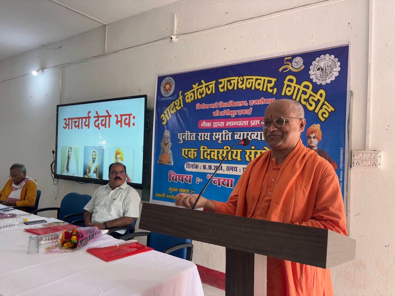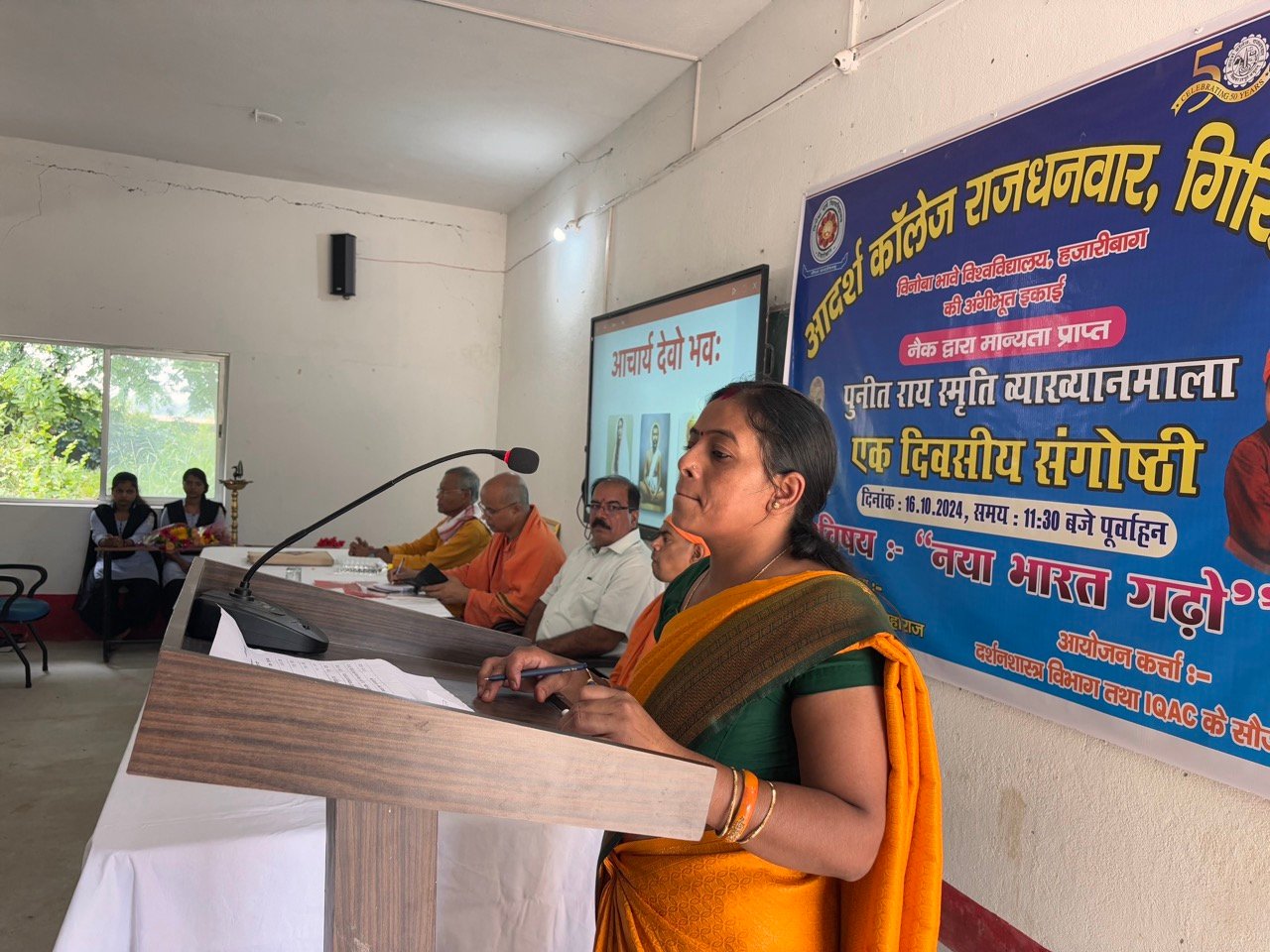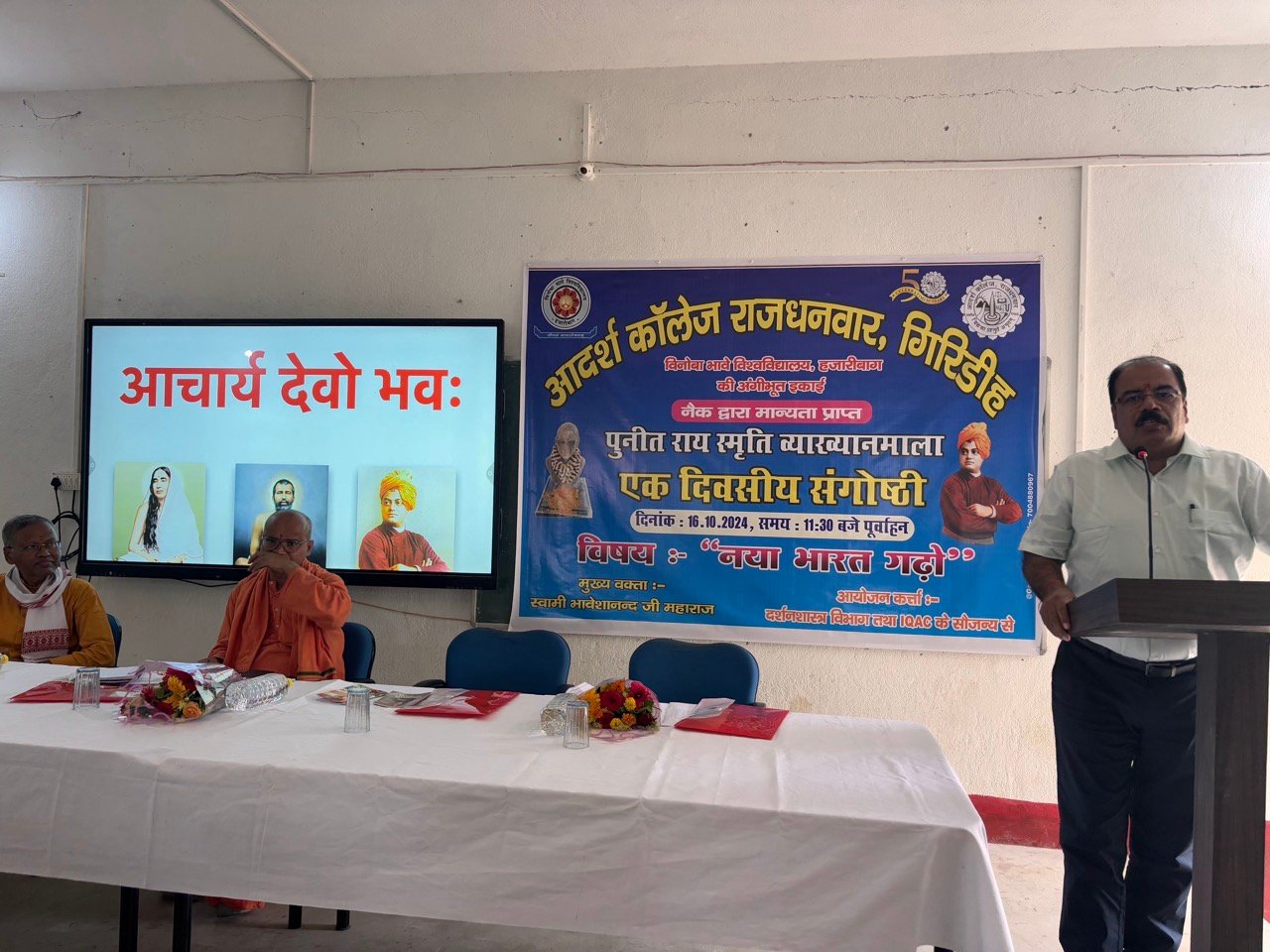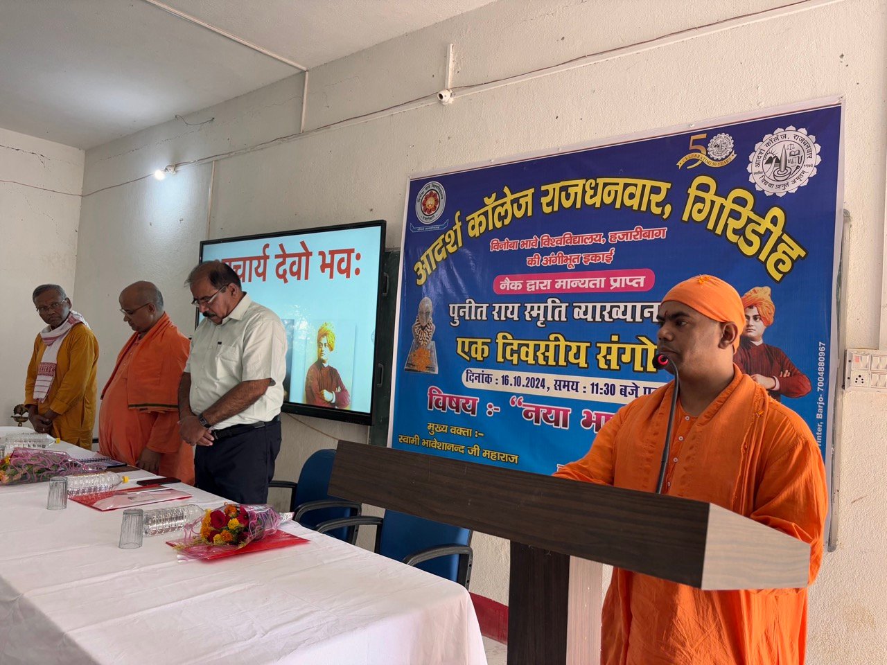 6 October 2024 को स्व पुनीत राय स्मृति व्याख्यान माला के अंतर्गत दर्शनशास्त्र विभाग एवम् I.Q.A.C के संयुक्त तत्वावधान में एक महत्वपूर्ण संगोष्ठी का आयोजन किया गया। इस संगोष्ठी का विषय था ‘”नया भारत गढो” जो देश के विकास और सामाजिक जागरूकता पर केंद्रित था। इस अवसर पर स्वामी भक्तिशानंद जी महाराज, डॉ दीपांकर मैटी, तथा अनेक विद्वान और शिक्षको ने अपनी उपस्थिति दर्ज कराईं।