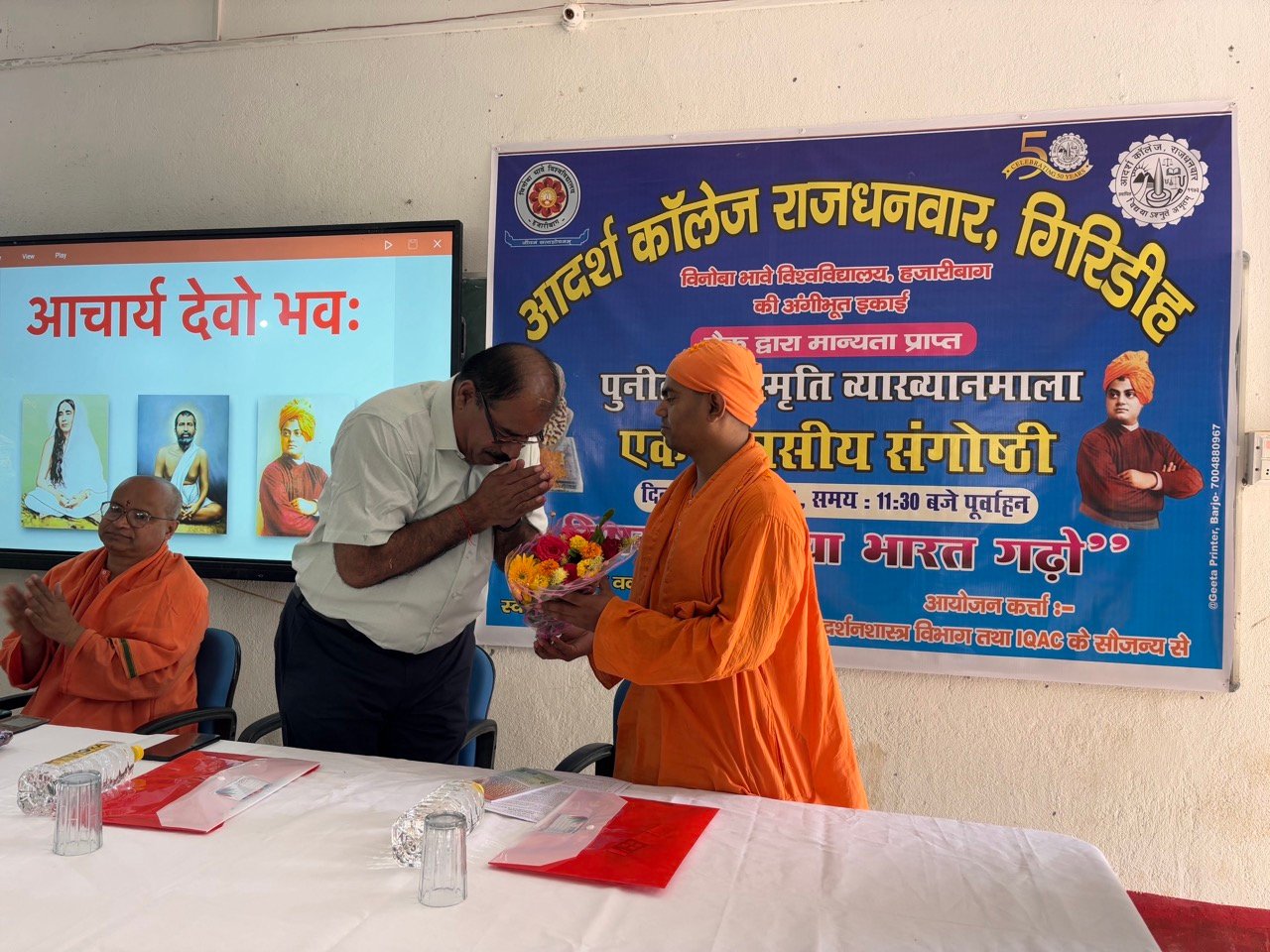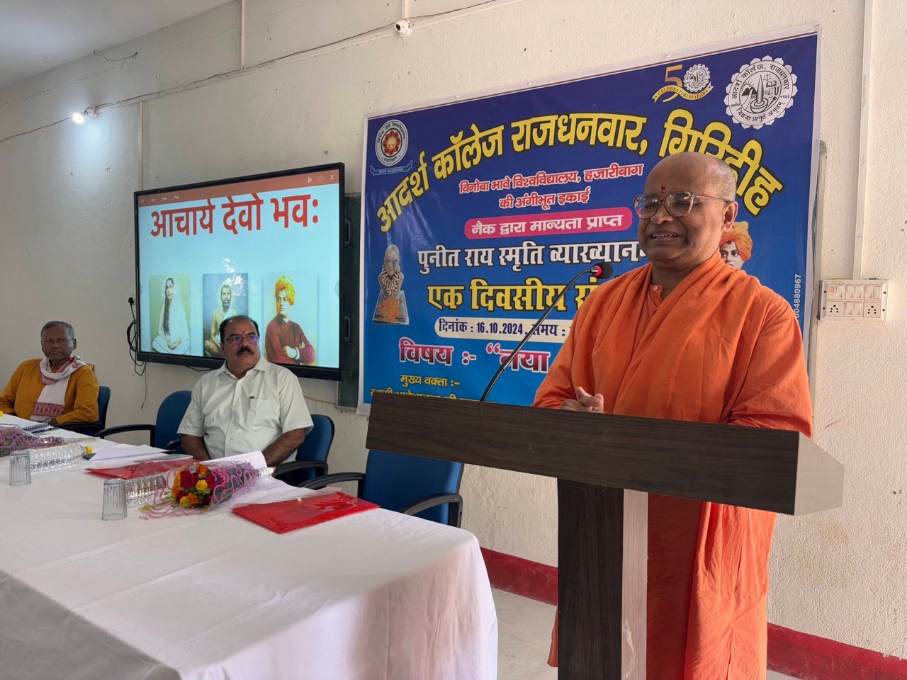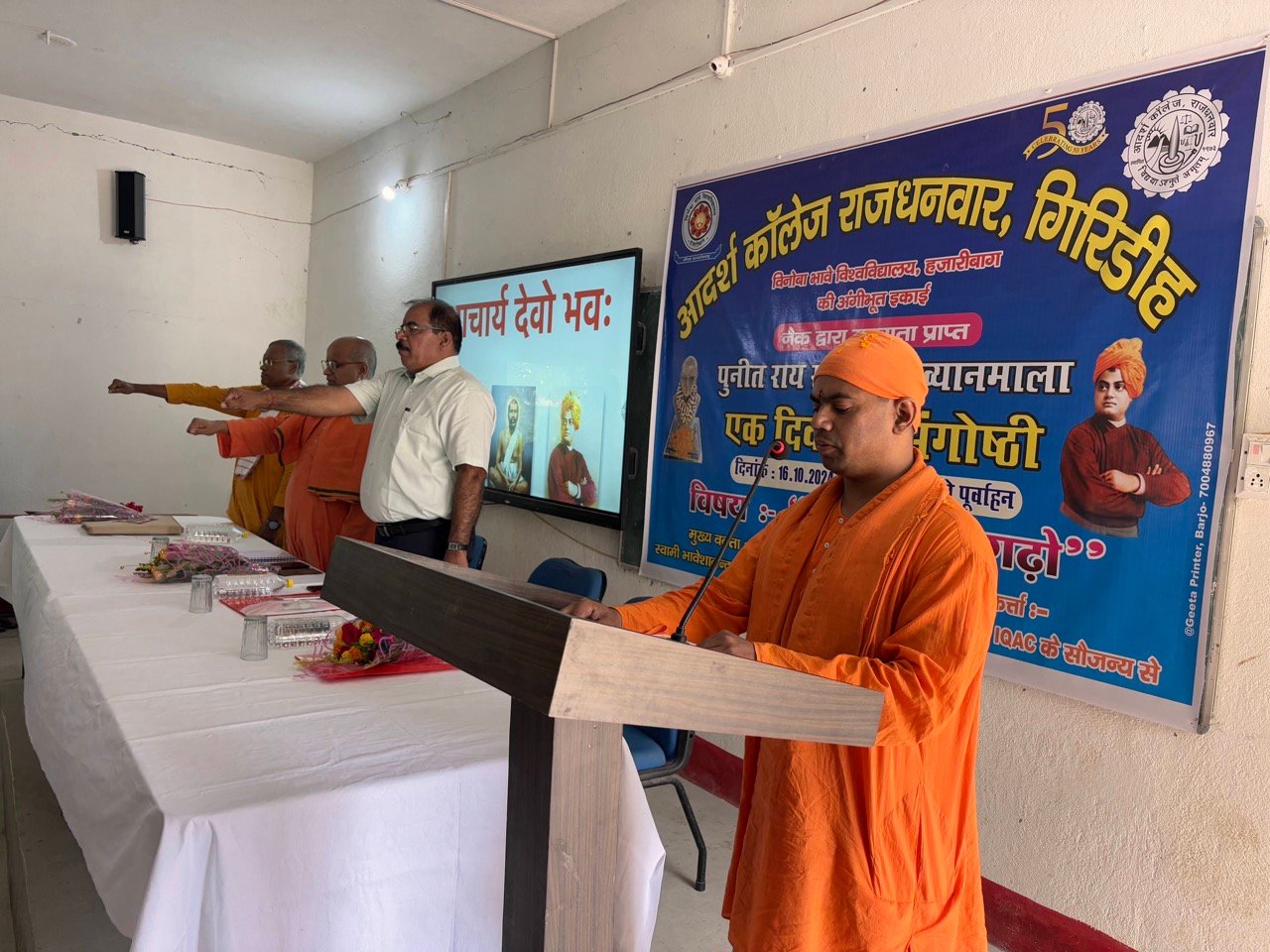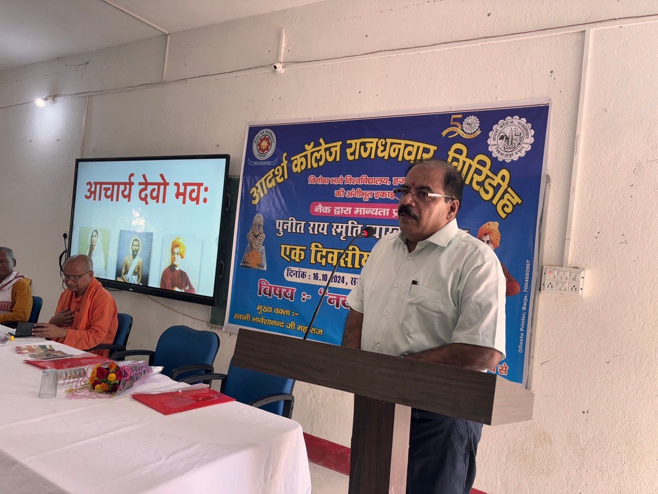 6 October 2024 को स्व पुनीत राय स्मृति व्याख्यान माला के अंतर्गत दर्शनशास्त्र विभाग एवम् I.Q.A.C के संयुक्त तत्वावधान में एक महत्वपूर्ण संगोष्ठी का आयोजन किया गया। इस संगोष्ठी का विषय था ‘”नया भारत गढो” जो देश के विकास और सामाजिक जागरूकता पर केंद्रित था। इस अवसर पर स्वामी भक्तिशानंद जी महाराज, डॉ दीपांकर मैटी, तथा अनेक विद्वान और शिक्षको ने अपनी उपस्थिति दर्ज कराईं।